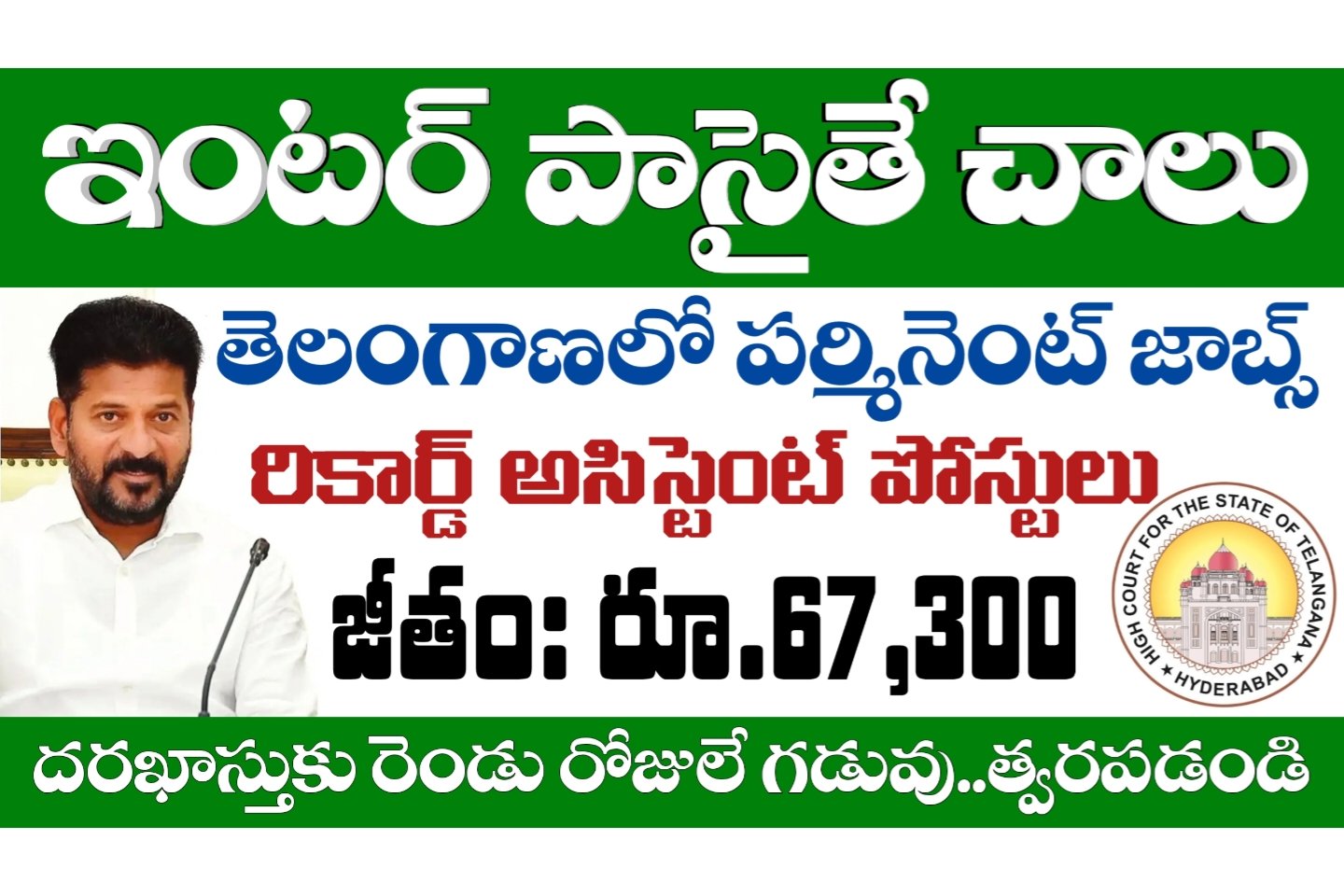 తెలంగాణ రాష్ట్ర హైకోర్టు నుంచి జ్యుడీషియల్ మినిస్టీరియల్ మరియు సబార్డినేట్ సర్వీస్ కింద రికార్డ్ అసిస్టెంట్ ఉద్యోగాలు భర్తీకి నోటిఫికేషన్ విడుదలైంది.