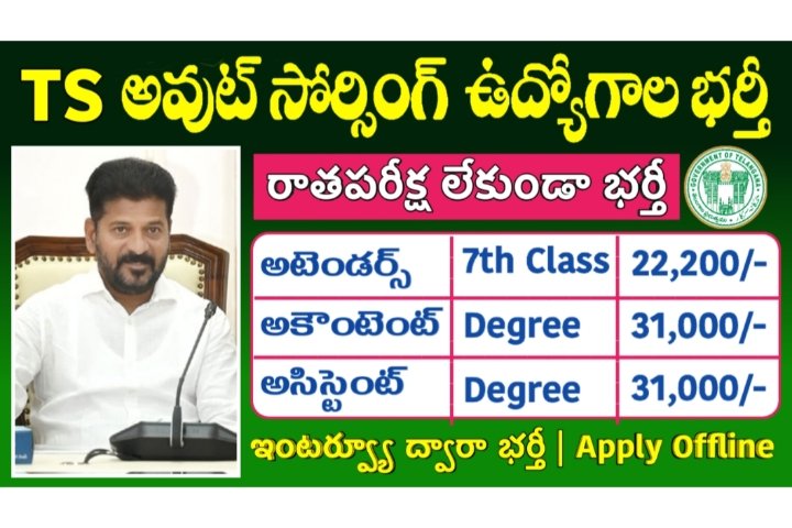 Telangana Outsourcing Jobs: తెలంగాణ రాష్ట్రంలో అవుట్సోర్సింగ్ ఉద్యోగాల భర్తీకి మరో కొత్త నోటిఫికేషన్ విడుదలైంది. తెలంగాణ ప్రభుత్వం, షెడ్యూల్డ్ కులముల అభివృద్ధి శాఖ నుంచి నోటిఫికేషన్ విడుదలైంది. 7th క్లాస్, డిగ్రీ, పీజీ విద్యార్హతలు కలిగిన అభ్యర్థులు దరఖాస్తు చేసుకోవచ్చు. ఎటువంటి రాత పరీక్ష లేదు. ఇంటర్వ్యూ ద్వారా అభ్యర్థులను ఎంపిక చేస్తారు. అర్హత కలిగిన అభ్యర్థులు ఆఫ్లైన్ ద్వారా దరఖాస్తు చేసుకోవాలి. అర్హత, జీతం, దరఖాస్తు ఎంపిక విధానం వివరాలు తెలుసుకుందాం..