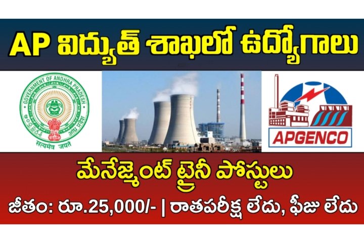 ఆంధ్రప్రదేశ్ విద్యుత్ శాఖకు చెందినటువంటి ఆంధ్రప్రదేశ్ పవర్ జనరేషన్ కార్పొరేషన్ లిమిటెడ్ (AP Genco) నుంచి కాంట్రాక్టు ప్రాతిపదికన ఉద్యోగాల భర్తీకి నోటిఫికేషన్ విడుదలైంది. మొత్తం 26 మేనేజ్మెంట్ ట్రైనీ (కెమికల్) పోస్టులను భర్తీ చేస్తున్నారు. ఈ పోస్టులు పొందే అభ్యర్థులు ఏపీ జెన్కో పరిధిలోని పవర్ ప్లాంట్ నందు పని చేయవలసి ఉంటుంది. ఎమ్మెస్సీ కెమిస్ట్రీ విద్యార్హత కలిగిన అభ్యర్థులు ఈ పోస్టులకు దరఖాస్తు చేసుకోవచ్చు. ఆంధ్రప్రదేశ్ రాష్ట్రంలోని అన్ని జిల్లాల అభ్యర్థులు ఈ పోస్టులకు దరఖాస్తు చేసుకోవచ్చు. ఆన్లైన్ ద్వారా దరఖాస్తు చేసుకోవాలి. అర్హత, వయస్సు, జీతం, దరఖాస్తు, ఎంపిక విధానం వివరాలు తెలుసుకుందాం…