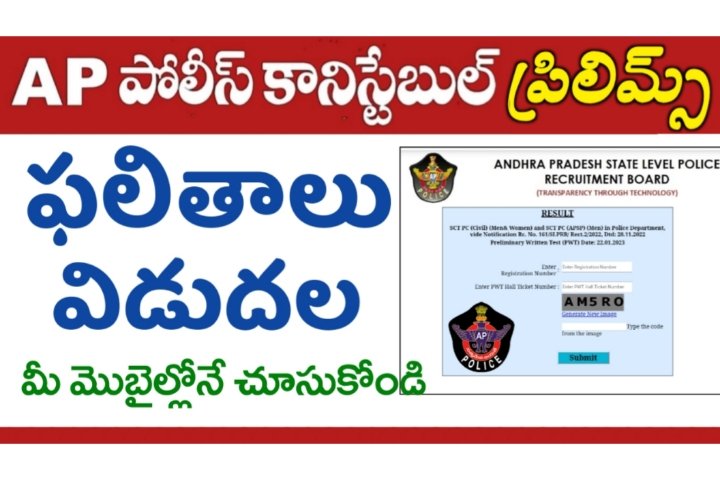 ఆంధ్రప్రదేశ్ రాష్ట్రంలో పోలీస్ కానిస్టేబుల్ ప్రిలిమ్స్ పరీక్ష యొక్క ఫలితాలను విడుదల చేశారు. మొత్తం 95,208 మంది అభ్యర్థులు క్వాలిఫై అయ్యారు. క్వాలిఫై అయిన అభ్యర్థులకు త్వరలో ఫిజికల్ టెస్టులు (PET/PMT) నిర్వహిస్తారు. స్కాన్ చేసిన ఓఎంఆర్ ఆన్సర్ షీట్లను వెబ్ సైట్ లో డౌన్లోడ్ చేసుకోగలరు. ఫిబ్రవరి 5వ తారీఖు నుంచి ఫిబ్రవరి ఏడవ తారీకు వరకు డౌన్లోడ్ చేసుకోవడానికి అవకాశం ఉంటుంది.