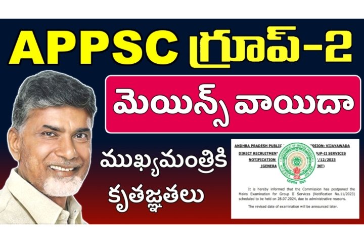 పాలనాపరమైన కారణాలతో గ్రూప్-2 మెయిన్స్ పరీక్షను వాయిదా వేసినట్లు ఏపీపీఎస్సీ ప్రకటించింది. త్వరలోనే మెయిన్స్ కొత్త తేదీలను ప్రకటిస్తామని కమిషన్ వెల్లడించింది.