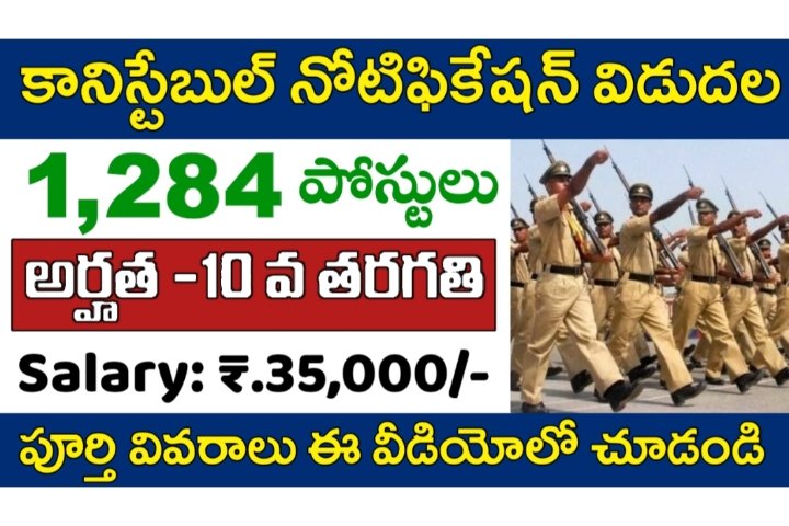 Constable Jobs: 1284 కానిస్టేబుల్ ఉద్యోగాల భర్తీకి నోటిఫికేషన్ విడుదల.. అర్హత, వయస్సు, దరఖాస్తు విధానం..