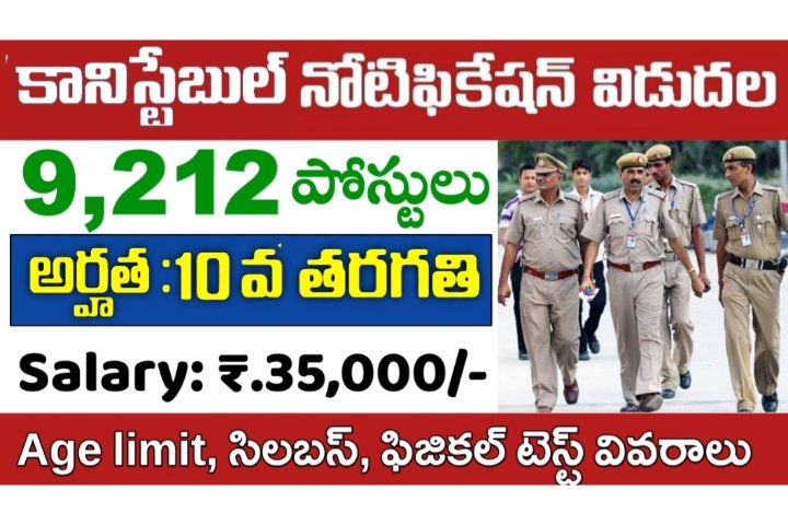 9,212 కానిస్టేబుల్ ఉద్యోగాల భర్తీకి నోటిఫికేషన్ విడుదల.. అర్హత, వయస్సు, దరఖాస్తు విధానం, ఎంపిక విధానం వివరాలు..