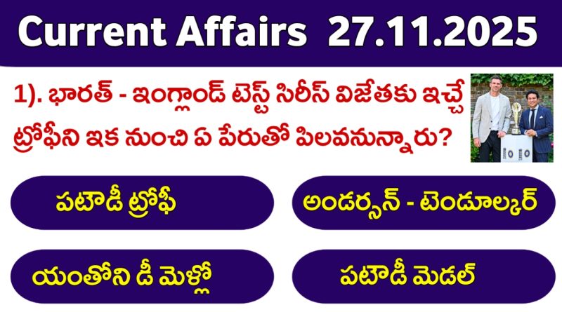 Current Affairs MCQS in Telugu 27.11.2025: భారత్ – ఇంగ్లాండ్ టెస్ట్ సిరీస్ విజేతకు ఇచ్చే ట్రోఫీని ఇకనుంచి ఏ పేరుతో పిలవనున్నారు?