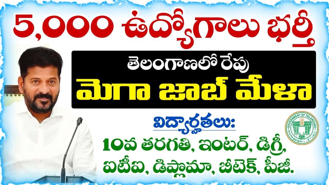 Mega Job Mela: తెలంగాణలో రేపు మెగా జాబ్ మేళా నిర్వహణ.. 5 వేల ఉద్యోగాలు భర్తీ.. 10th, ఇంటర్, డిగ్రీ, ఐటీఐ, డిప్లొమా, బీటెక్, ఫార్మసీ అర్హతలు
