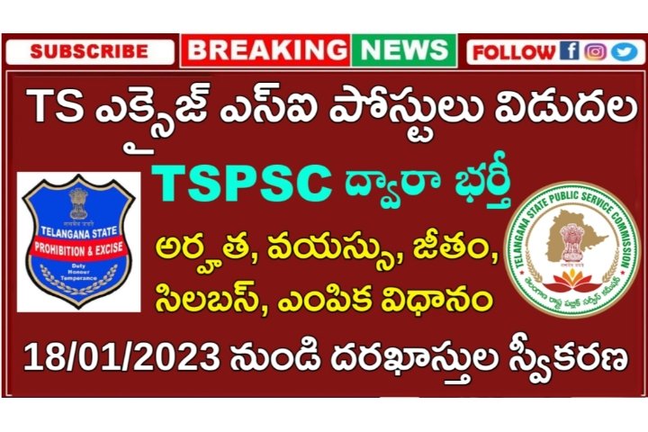 TSPSC | ఎక్సైజ్ ఎస్సై పోస్టులకు దరఖాస్తుల ఆహ్వానం
