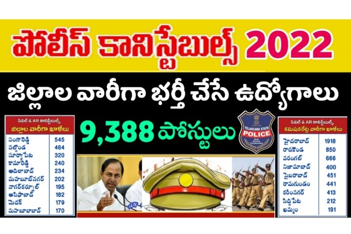 తెలంగాణ రాష్ట్రంలో సివిల్ మరియు ఏఆర్ కానిస్టేబుల్ ఉద్యోగాల భర్తీకి నోటిఫికేషన్ విడుదలైంది. జిల్లాల వారీగా ఖాళీల వివరాలకు క్రింద ఉన్న PDF Link పై క్లిక్ చేయండి. District wise Vacancies