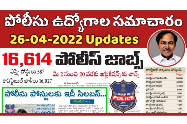 తెలంగాణ రాష్ట్రంలో 16 వేలకు పైగా పోలీస్ కానిస్టేబుల్ ఉద్యోగాల భర్తీకి త్వరలో నోటిఫికేషన్ విడుదల. నోటిఫికేషన్ విడుదల చేసిన తర్వాత క్రింద ఉన్న వెబ్సైట్ లింక్ పై క్లిక్ చేసి నోటిఫికేషన్ డౌన్లోడ్ చేసుకోగలరు. TSLPRB Website Link