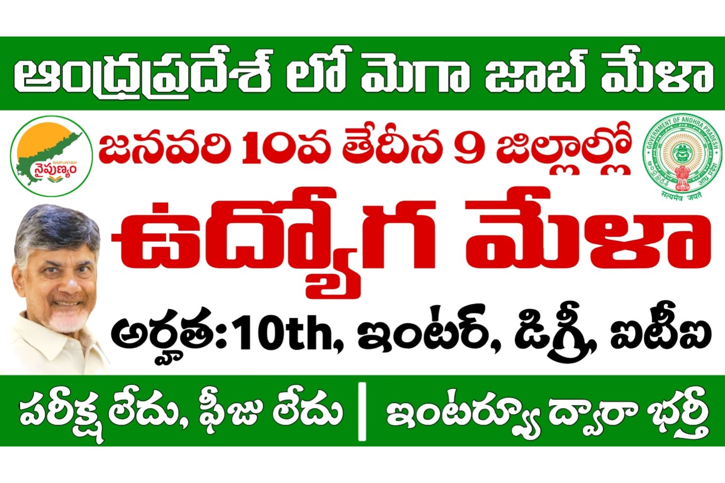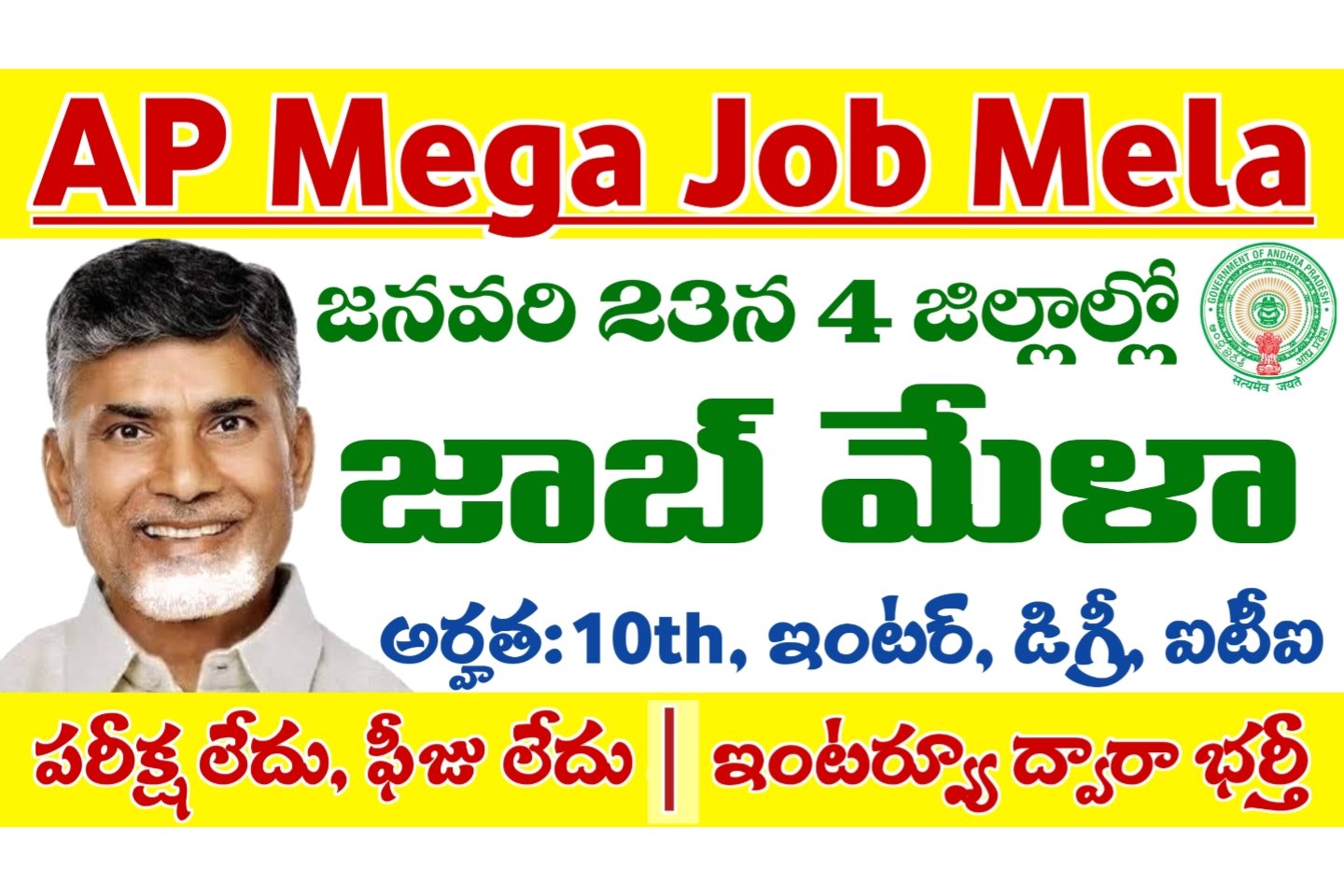 Job Mela: జనవరి 23న 4 జిల్లాల్లో జాబ్ మేళా నిర్వహణ.. అర్హతలు: 10th, ఇంటర్, డిగ్రీ, ఐటీఐ, డిప్లొమా
