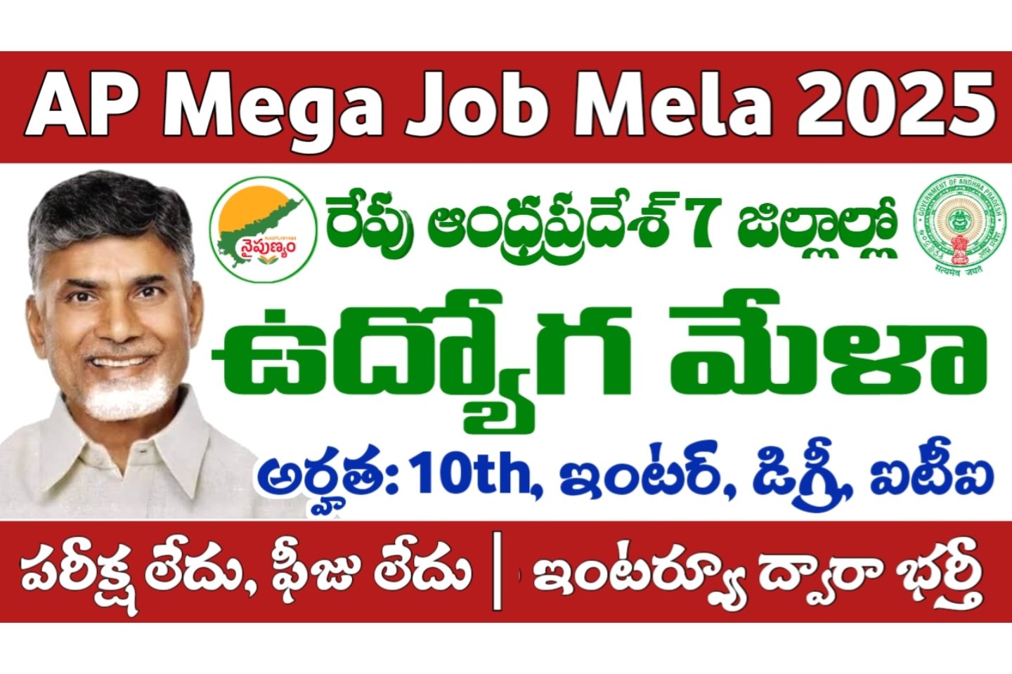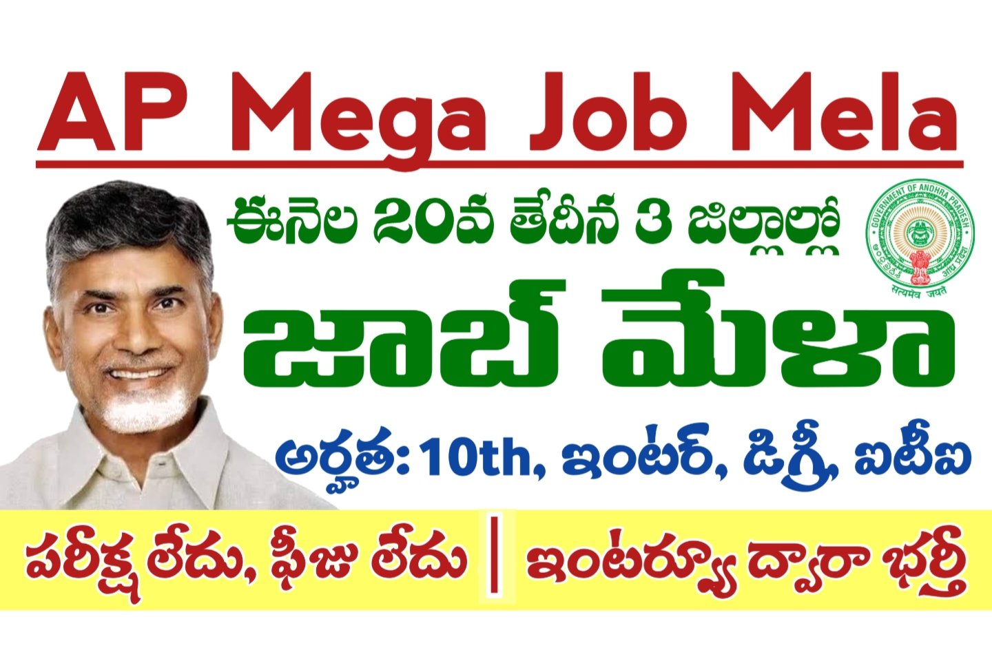 AP Job Mela: ఆంధ్రప్రదేశ్ రాష్ట్రంలోని 4 జిల్లాల్లో జనవరి 23వ తేదీన జాబ్ మేళా నిర్వహిస్తున్నారు. ఎటువంటి రాతపరీక్ష లేకుండా ఉద్యోగాలను భర్తీ చేస్తారు. నెల్లూరు జిల్లా, తిరుపతి జిల్లా, అన్నమయ్య జిల్లా, డాక్టర్ బి.ఆర్. అంబేద్కర్ కోనసీమ జిల్లాల్లోని నిరుద్యోగులకు ఉపాధి కల్పించేందుకు.. ఏపీ నైపుణ్యాభివృద్ధి సంస్థ, జిల్లా ఉపాధి కల్పన శాఖ, సిడాప్ సంయుక్త ఆధ్వర్యంలో జాబ్ మేళా నిర్వహిస్తున్నారు. పదవ తరగతి, ఇంటర్మీడియట్, డిగ్రీ, ఐటీఐ, డిప్లొమా, బీటెక్, పీజీ విద్యార్హత … Read more