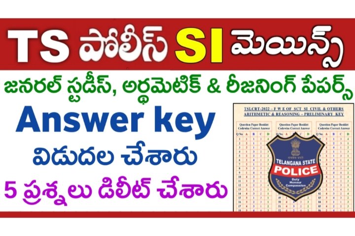 TSLPRB: తెలంగాణ ఎస్సై మెయిన్స్ ప్రిమినరీ ‘కీ’ విడుదల… ‘కీ’ కోసం ఇక్కడ క్లిక్ చేయండి