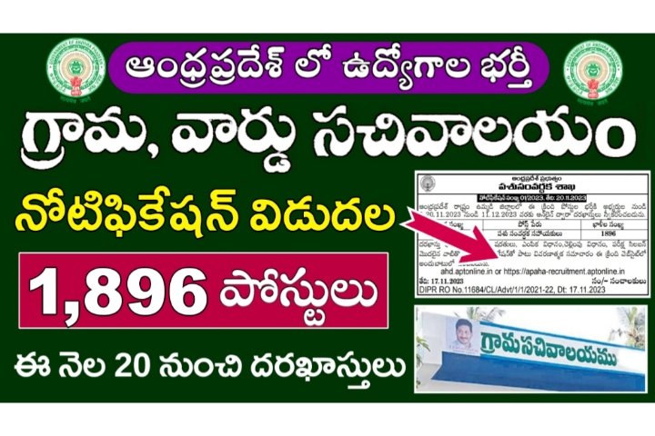 AP Grama Sachivalayam: గ్రామ సచివాలయాల్లో 1896 ఉద్యోగాల భర్తీకి నోటిఫికేషన్.. దరఖాస్తు ప్రక్రియ ప్రారంభం