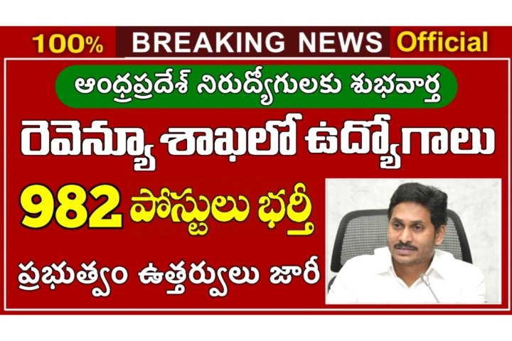 AP రెవెన్యూ శాఖలో 982 ఉద్యోగాల భర్తీకి ఉత్తర్వులు జారీ | AP Revenue Department Jobs Notification 2024