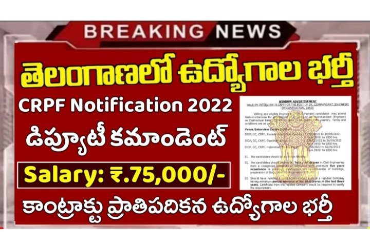 CRPF నుండి అసిస్టెంట్ సబ్ ఇన్స్పెక్టర్ మరియు హెడ్ కానిస్టేబుల్ ఉద్యోగాల భర్తీకి నోటిఫికేషన్ విడుదలైంది. అసిస్టెంట్ సబ్ ఇన్స్పెక్టర్ (Steno) 143 పోస్టులు, హెడ్ కానిస్టేబుల్ Ministerial) 1315 పోస్టులను భర్తీ చేస్తున్నారు. ఇంటర్మీడియట్ విద్యార్హత కలిగిన వారు దరఖాస్తు చేసుకోవచ్చు. Male & Female అభ్యర్థులు అందరూ దరఖాస్తు చేసుకోగలరు. క్రింది లింక్ పై క్లిక్ చేసి నోటిఫికేషన్ డౌన్లోడ్ చేసుకోగలరు. Notification Link