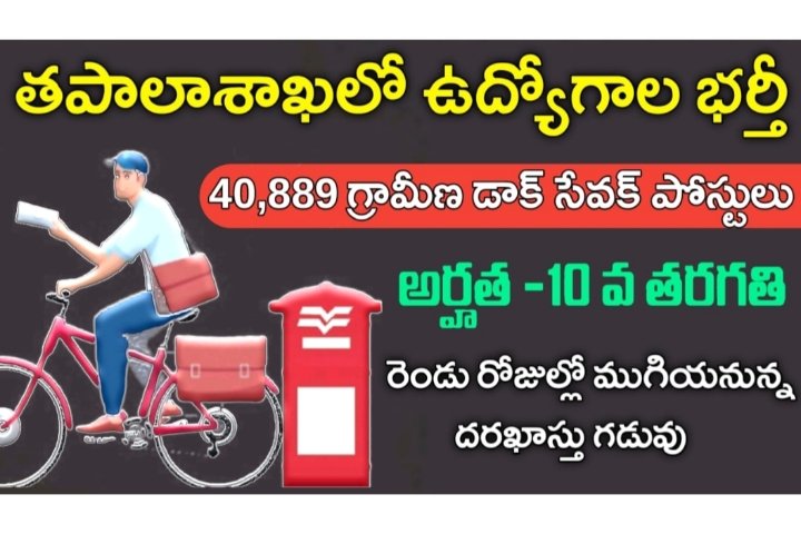 పోస్టల్ సర్కిళ్లలో 40,889 గ్రామీణ డాక్ సేవక్ (GDS) ఉద్యోగాల భర్తీకి నోటిఫికేషన్ విడుదలైన విషయం తెలిసిందే. ఈ ఉద్యోగాలకు దరఖాస్తు గడువు మరో రెండు రోజుల్లో ముగియనుంది. పదవ తరగతి విద్యార్హత కలిగిన అభ్యర్థులందరూ దరఖాస్తు చేసుకోవచ్చు. పదవ తరగతిలో సాధించిన మార్కుల ఆధారంగా అభ్యర్థులను ఎంపిక చేస్తారు. ఈ ఉద్యోగాలకు ఎంపికైన వారు బ్రాంచ్ పోస్ట్ మాస్టర్, అసిస్టెంట్ బ్రాంచ్ పోస్ట్ మాస్టర్/ డాక్ సేవక్ హోదాలతో పని చేయాల్సి ఉంటుంది. ఆంధ్రప్రదేశ్ రాష్ట్రంలో … Read more