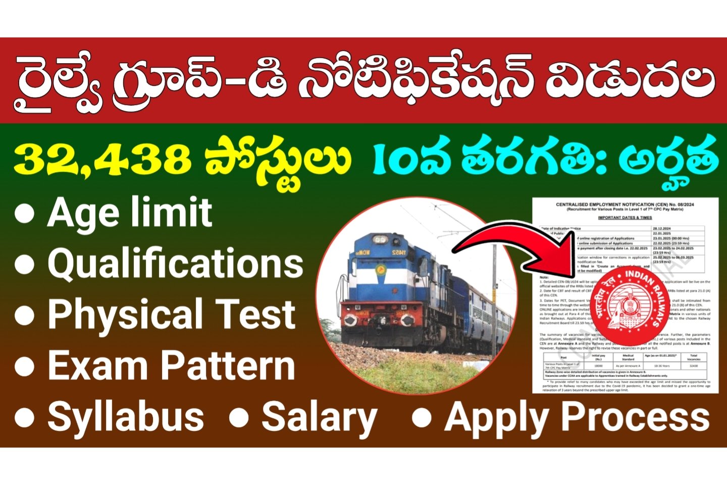 RRB Group D Notification 2025 | Age limit, Qualifications, Exam Pattern, Salary, Apply Process