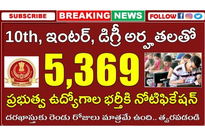 స్టాఫ్ సెలక్షన్ కమిషన్ నుంచి సబ్ ఇన్స్పెక్టర్ (SI) ఉద్యోగాల భర్తీకి నోటిఫికేషన్ విడుదలైంది. 1,876 పోస్టులను భర్తీ చేస్తున్నారు. ఢిల్లీ పోలీస్ మరియు సెంట్రల్ ఆర్మ్డ్ పోలీస్ ఫోర్సెస్ (CAPFs) లో ఈ ఉద్యోగాలను భర్తీ చేస్తున్నారు. ఏదైనా డిగ్రీ విద్యార్హత కలిగిన అభ్యర్థులు ఈ ఉద్యోగాలకు దరఖాస్తు చేసుకోవచ్చు. ఇవి కేంద్ర ప్రభుత్వ ఉద్యోగాలు కాబట్టి ఆంధ్రప్రదేశ్, తెలంగాణ.. రెండు తెలుగు రాష్ట్రాలకు సంబంధించిన అభ్యర్థులందరూ దరఖాస్తు చేసుకోవచ్చు. ఆగస్టు15 లోగా ఆన్లైన్లో దరఖాస్తు … Read more