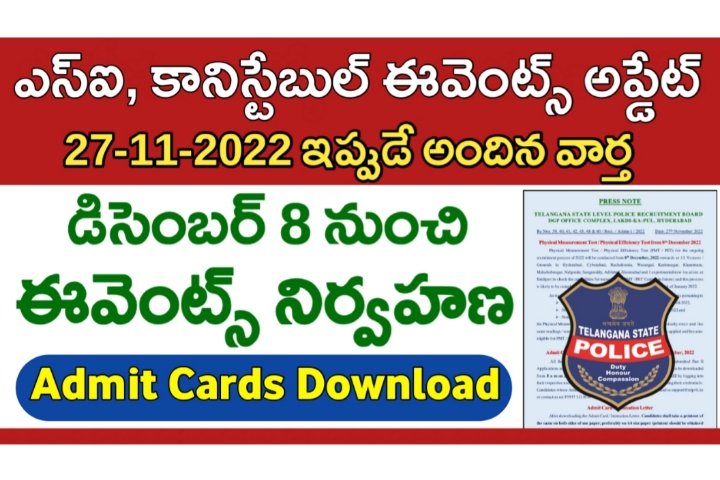 TS Police Constable & SI Events 2022 Admit Cards released. Click on the below link to download Admit Cards. Download Admit Card