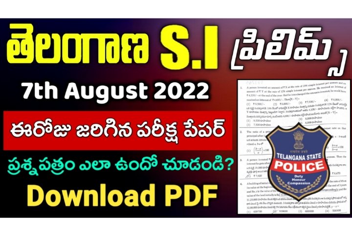 TS SI Preliminary Test Question Paper 2022 PDF Link given below. Download PDF