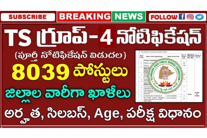 TSPSC Group 4 Notification 2022 | 8039 పోస్టులతో నోటిఫికేషన్ విడుదల | అర్హత, వయస్సు, దరఖాస్తు విధానం, సిలబస్ వివరాలు