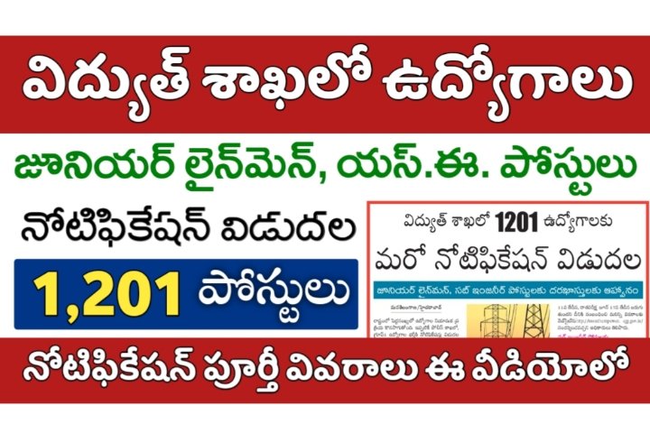 తెలంగాణ రాష్ట్రంలో విద్యుత్ శాఖలో ఉద్యోగాల భర్తీకి నోటిఫికేషన్ విడుదల. జూనియర్ లైన్ మెన్, అసిస్టెంట్ ఇంజనీర్, సబ్ ఇంజనీర్ ఉద్యోగాలను భర్తీ చేస్తున్నారు. క్రింద ఉన్న PDF Link పై క్లిక్ చేసి నోటిఫికేషన్ డౌన్లోడ్ చేసుకోగలరు. Download Notification