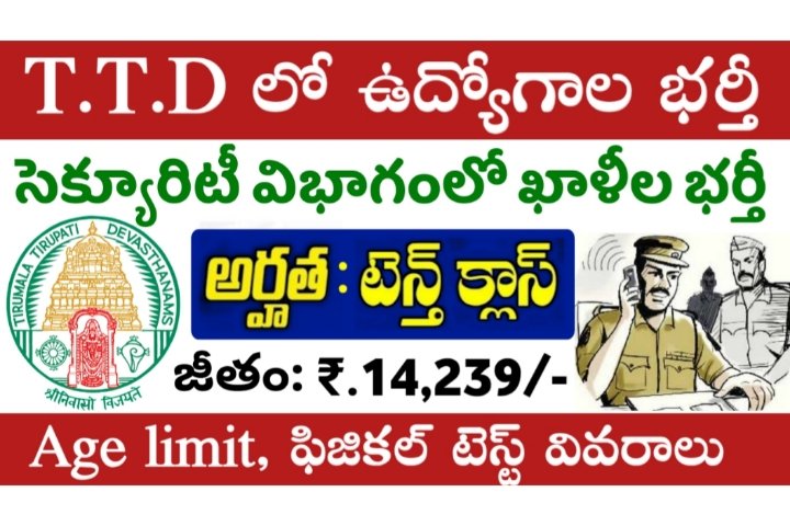 తిరుమల తిరుపతి దేవస్థానం, అమరావతి నందు ప్రైవేట్ సెక్యూరిటీ గార్డు ఉద్యోగాల భర్తీ కోసం నోటిఫికేషన్ విడుదలైంది. క్రింద ఉన్న PDF లింక్ పై క్లిక్ చేసి నోటిఫికేషన్ డౌన్లోడ్ చేసుకోగలరు. Download Notification