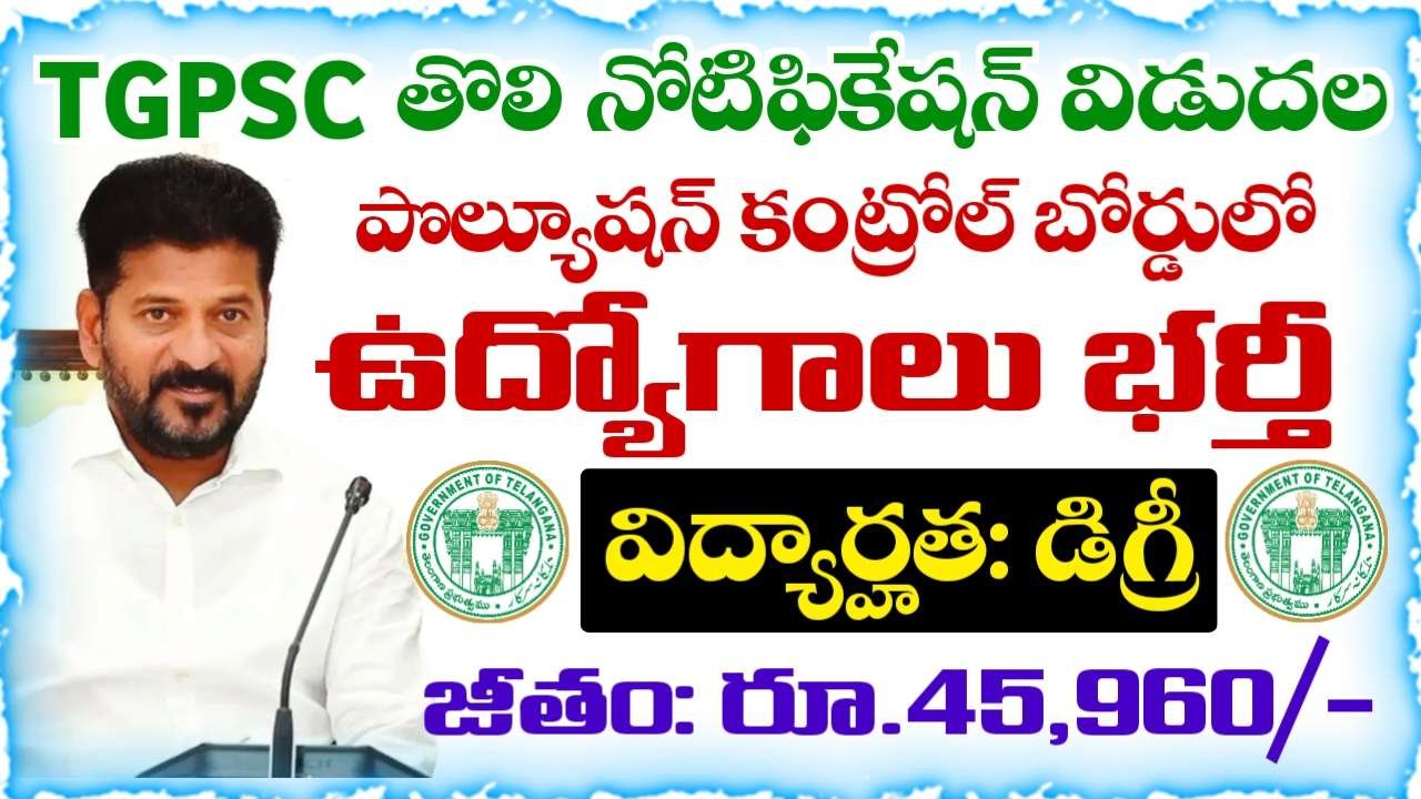 TGPSC తొలి నోటిఫికేషన్ 2026 – పొల్యూషన్ కంట్రోల్ బోర్డులో ఉద్యోగాలు భర్తీ | అర్హత: డిగ్రీ | జీతం: రూ.45,960