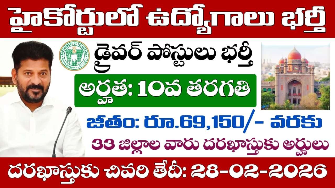 తెలంగాణ హైకోర్టు నుంచి డ్రైవర్ ఉద్యోగాలు భర్తీకి నోటిఫికేషన్ విడుదలైంది.