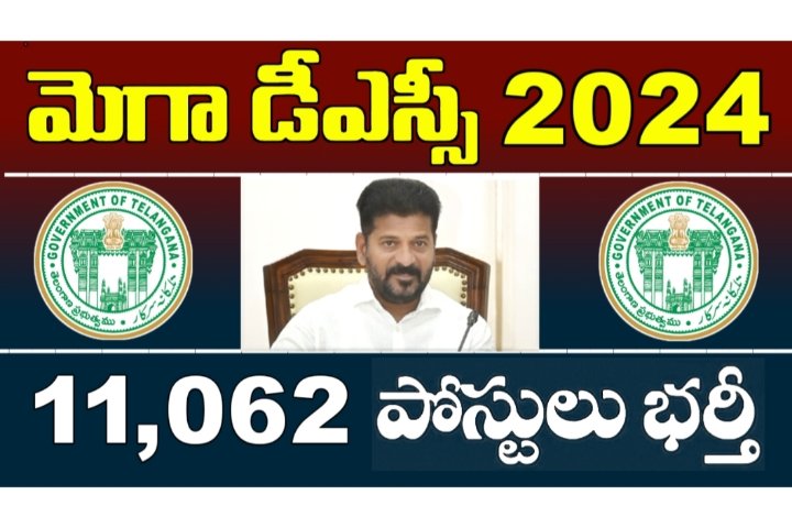 తెలంగాణ రాష్ట్ర ప్రభుత్వం 11,062 టీచర్ పోస్టుల భర్తీకి మెగా డీఎస్సీ-2024 నోటిఫికేషన్ విడుదల చేసింది. గురువారం సీఎం రేవంత్ రెడ్డి తన నివాసంలో విడుదల చేశారు. మార్చి 4వ తారీకు నుంచి ఏప్రిల్ 2వ తారీకు వరకు ఈ ఉద్యోగాలకు దరఖాస్తులను స్వీకరిస్తారు. దరఖాస్తు ఫీజు రూ.1000గా ప్రభుత్వం నిర్ణయించింది. తెలంగాణ రాష్ట్రవ్యాప్తంగా 11 పట్టణాల్లో ఆన్లైన్ పద్ధతిలో పరీక్షలను నిర్వహించనున్నారు. దీనికి సంబంధించిన తేదీలను ప్రభుత్వం త్వరలో ప్రకటించనుంది. గతంలో దరఖాస్తు చేసినవాళ్లు మళ్లీ దరఖాస్తు చేయాల్సిన అవసరం లేదు. కొత్త డీఎస్సీకి వాటిని పరిగణనలోనికి తీసుకుంటామని పాఠశాల విద్యాశాఖ కమిషనర్ తెలిపారు.