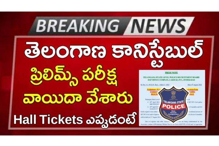 తెలంగాణ రాష్ట్రంలో పోలీస్ కానిస్టేబుల్ ప్రిలిమ్స్ పరీక్ష వాయిదా వేశారు. పూర్తి వివరాలకు క్రింద ఉన్న PDF లింక్ పై క్లిక్ చేయండి.