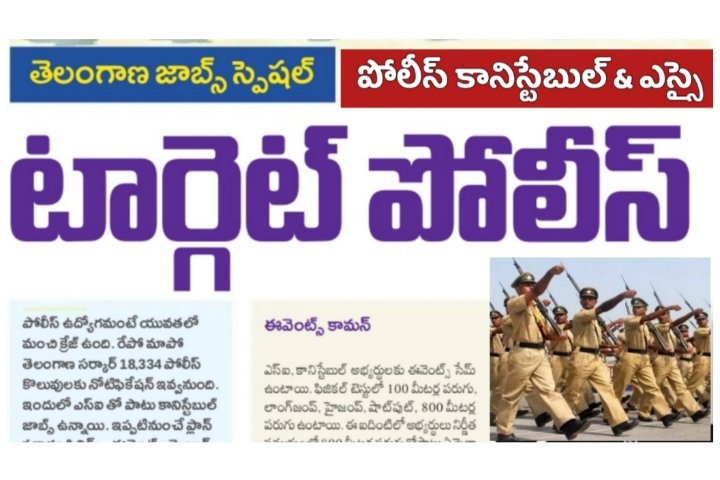 తెలంగాణ రాష్ట్రంలో పోలీస్ కానిస్టేబుల్ మరియు ఎస్సై ఉద్యోగాల భర్తీకి సంబంధించిన నోటిఫికేషన్లు త్వరలో విడుదల చేయనున్నారు. మొత్తం 18,334 పోస్టులు భర్తీ చేయనున్నారు. ఈ ఉద్యోగాలకు ఎంపిక ప్రక్రియ పూర్తీ వివరాలకు క్రింద ఉన్న లింక్ పై క్లిక్ చేసి PDF డౌన్లోడ్ చేసుకొని తెలుసుకోగలరు.
